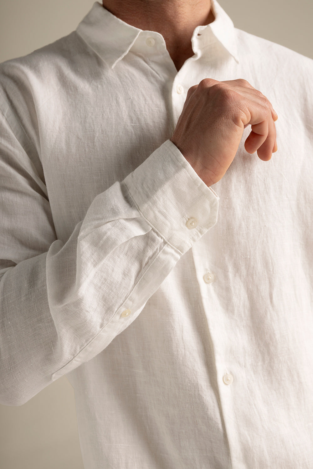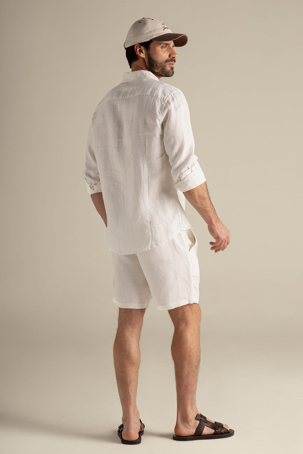 Camisa privé en lino, manga larga, silueta clásica, cuello italiano. Color blanco, Ref. SH41052