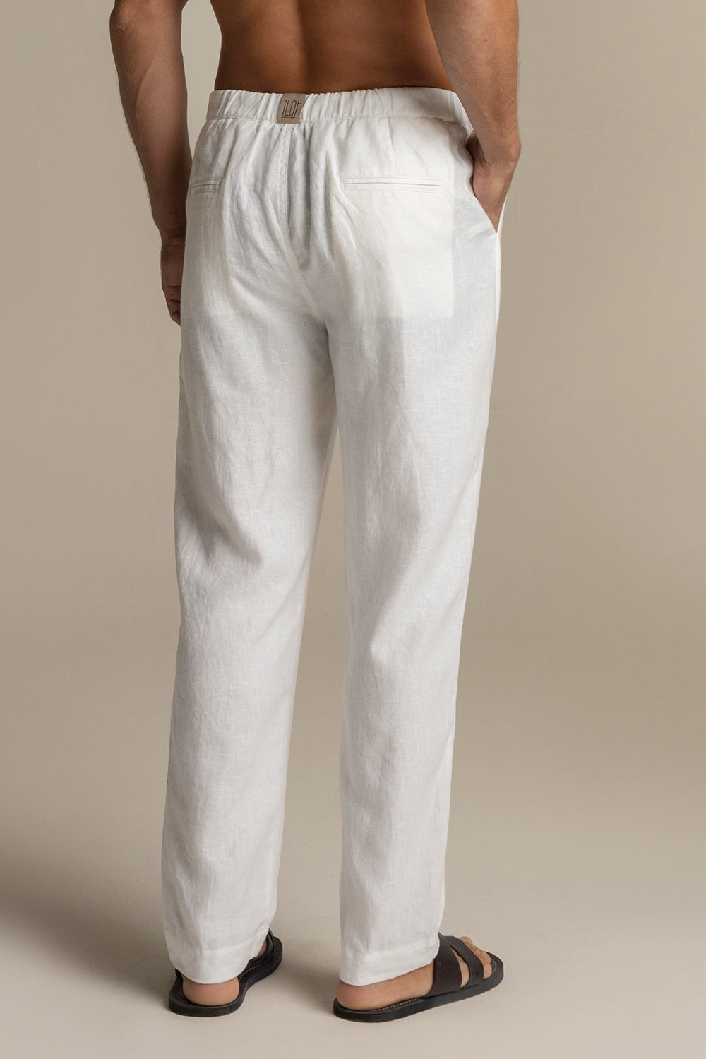 Pantalón Privé en lino blanco. Classic fit, pretina con broche invisible y resorte en la pretina trasera. Bolsillos de ribete traseros y pinzas. Color off white, Ref. PH60B61