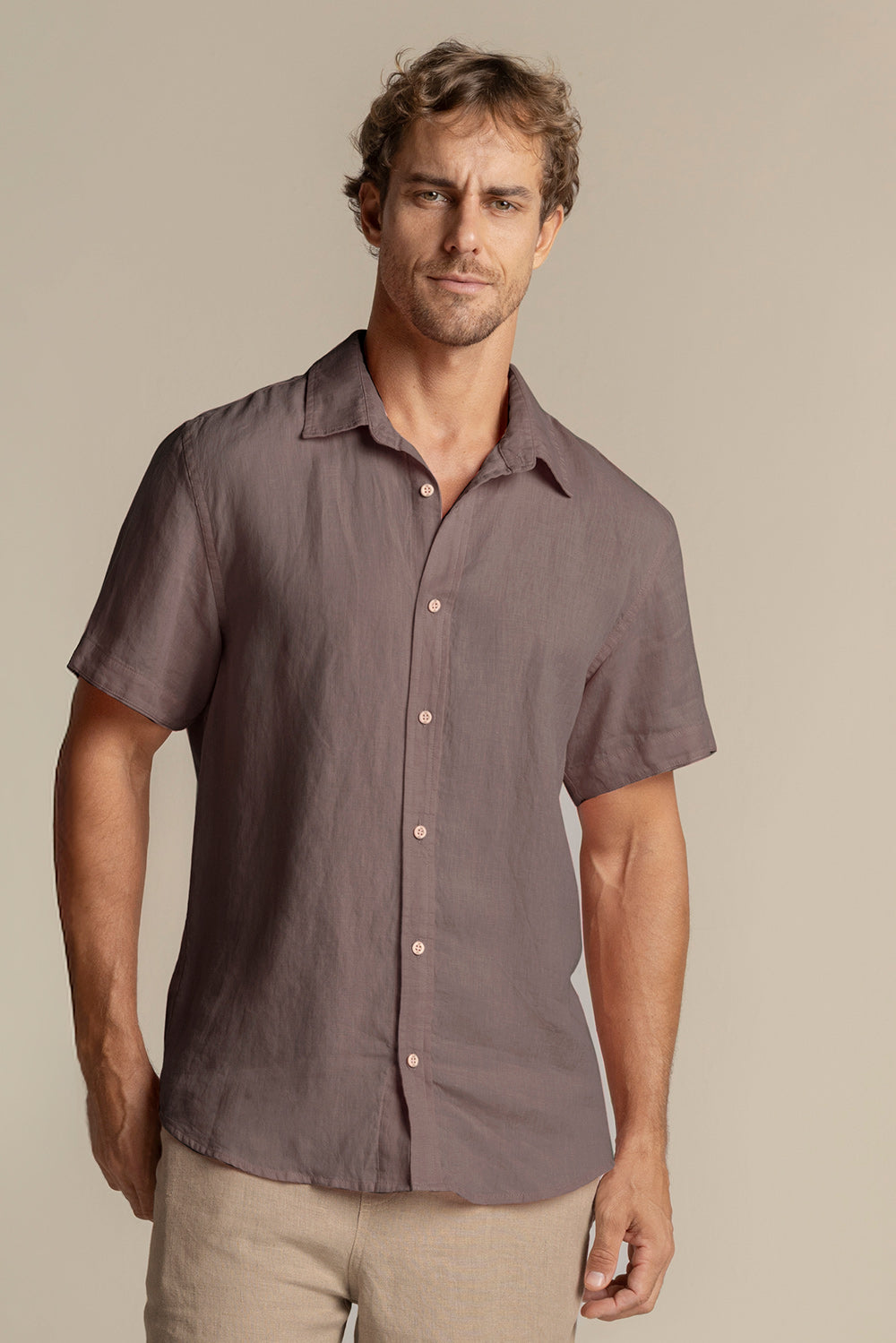 Camisa Bali en lino café mocca. Manga corta, classic fit y cuello clásico. Color café mocca, Ref. SH70C61